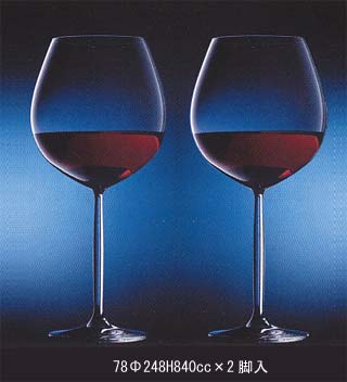 イタリアワイン向けだが、実は最もパフォーマンスの良いグラス。赤でも白でもオールマイティに対応可能。先がやや細くなり、香りが包まれる形です。高級赤ワイン用 |