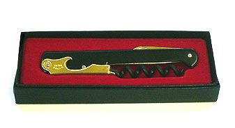 ドゥリュック・ブラック&ゴールドモデル シャープな外観のブラックにフックとカッターが上品なブリリアント・ゴールド使用のとてもお洒落なモデルです。プロのソムリエにぜひ使っていただきたいモデルです。世界最高水準のテフロン・スクリュー。ノコギリ刃カッター採用の話題品です! |